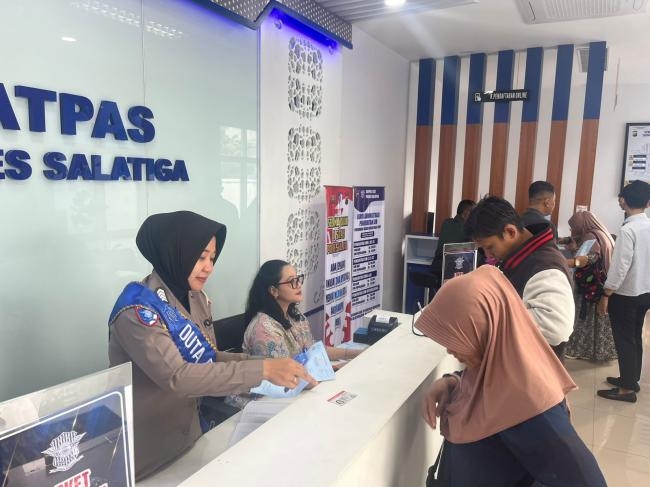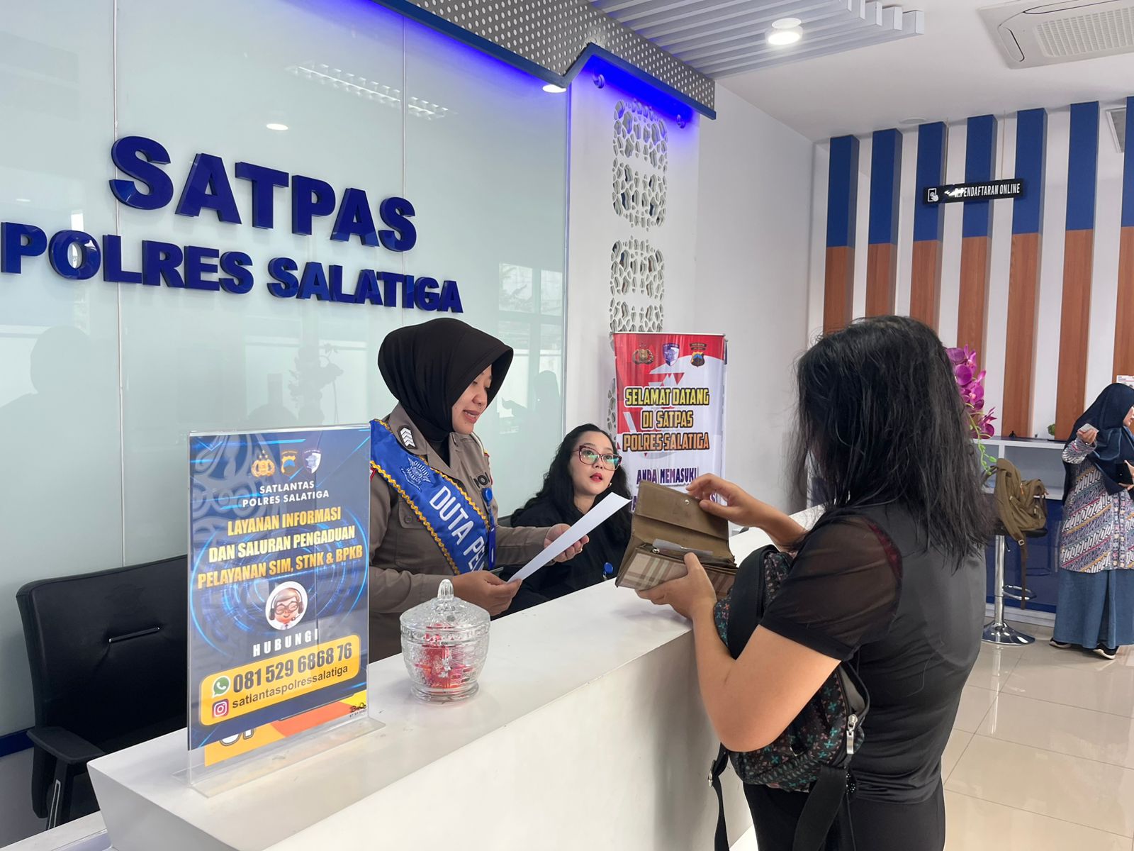Satuan Lalulintas (Satlantas) Polres Salatiga Polda Jateng menerapkan Protokol Kesehatan (Prokes) secara ketat kepada pemohon pembuatan Surat Izin Mengemudi (SIM), mulai dari pintu masuk ke Kantor Satpas sampai selesainya proses pembuatan SIM