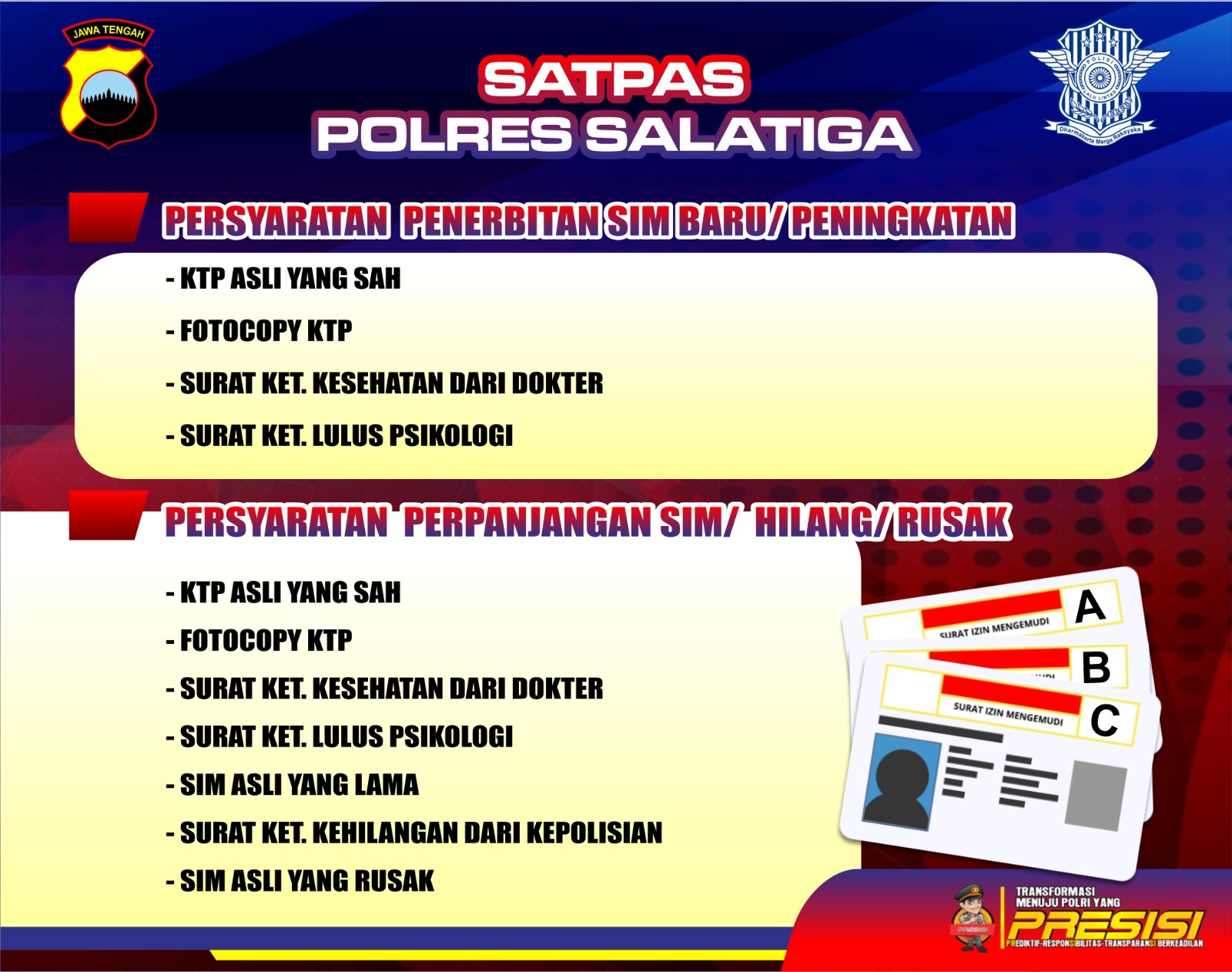 Persyaratan penerbitan Surat Ijin Mengemudi ( SIM ), antara lain: